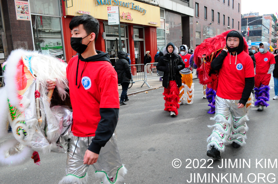 The Guardian Angels, an unarmed non-profit safety patrol group based in New York City, stand watch in Chinatown, Manhattan, New York City. The Guardian Angels later marched in the Lunar New Year Parade in Chinatown.